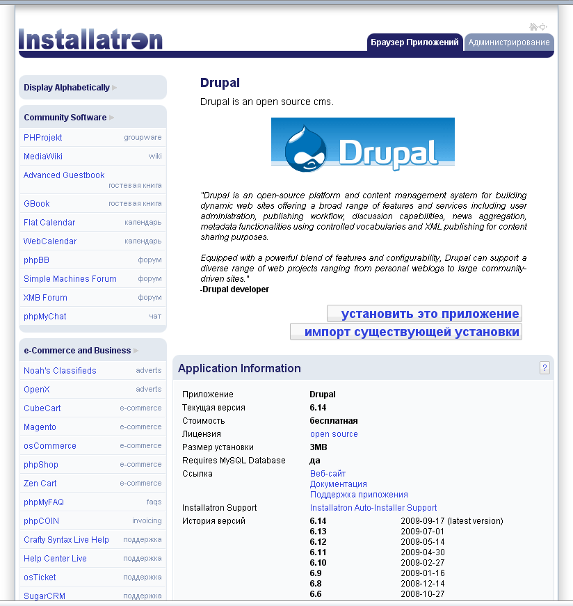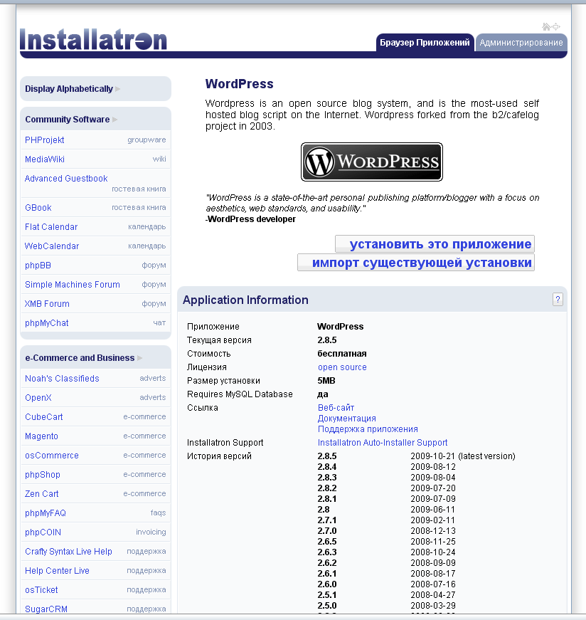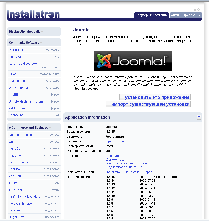 Для того, щоб спростити життя кінцевого користувача, існує продукт Installatron. Він містить величезну кількість автоустановочних скриптів, які можна встановити, буквально, в два кліка.